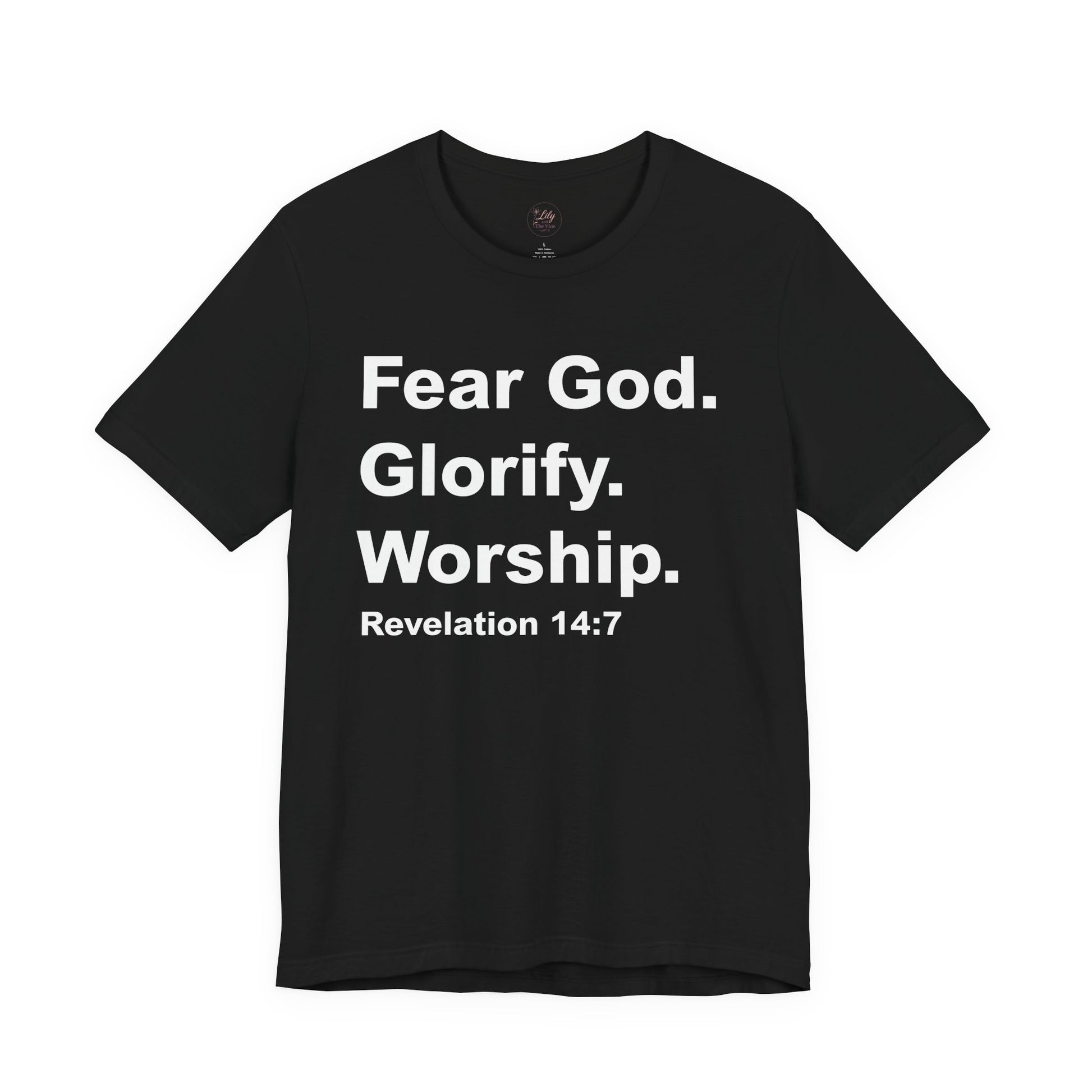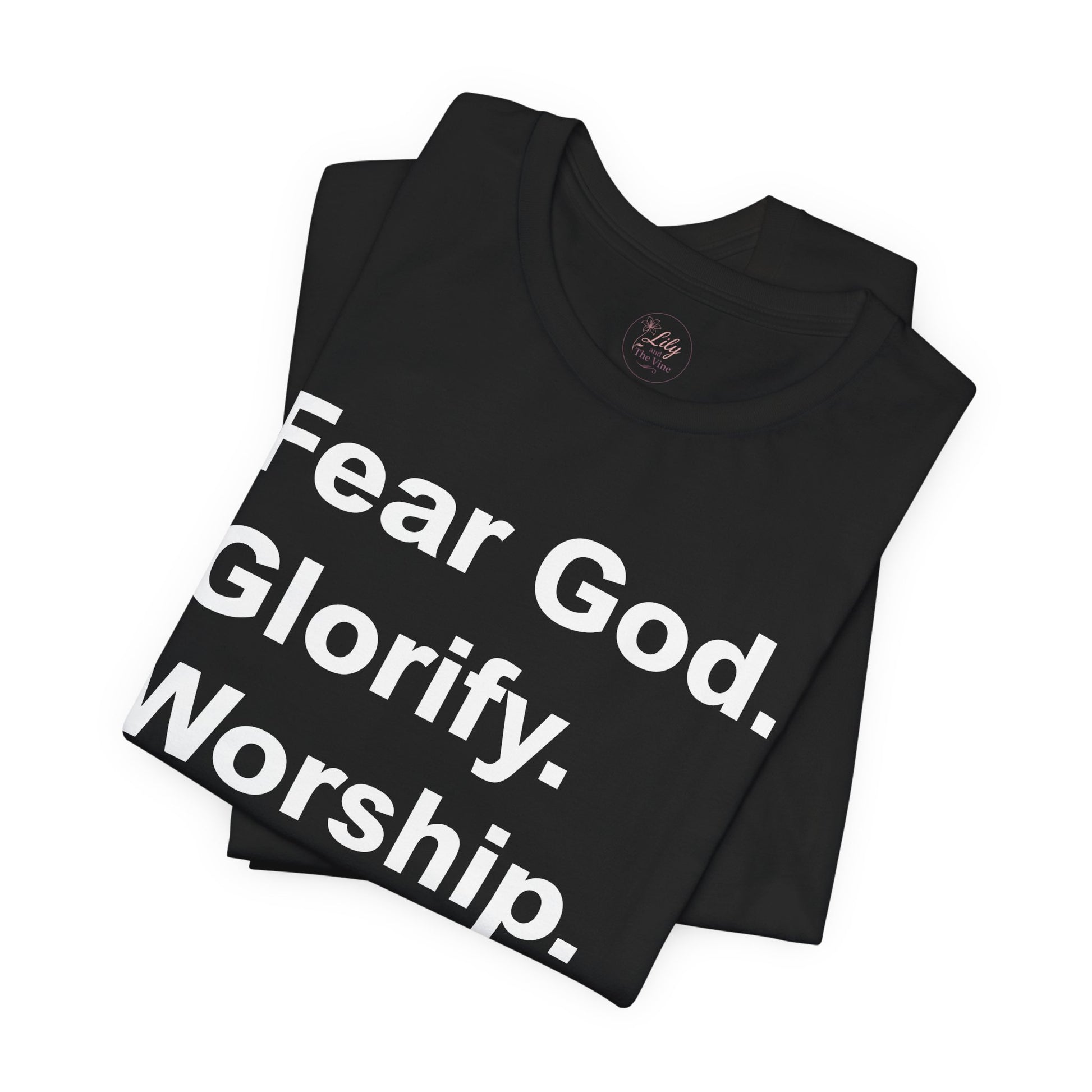Fear God. Glorify. Worship. Unisex Tee - Casual Faith T-Shirt for Daily Inspiration, Christian Apparel, Gift for Believers, Church Wear