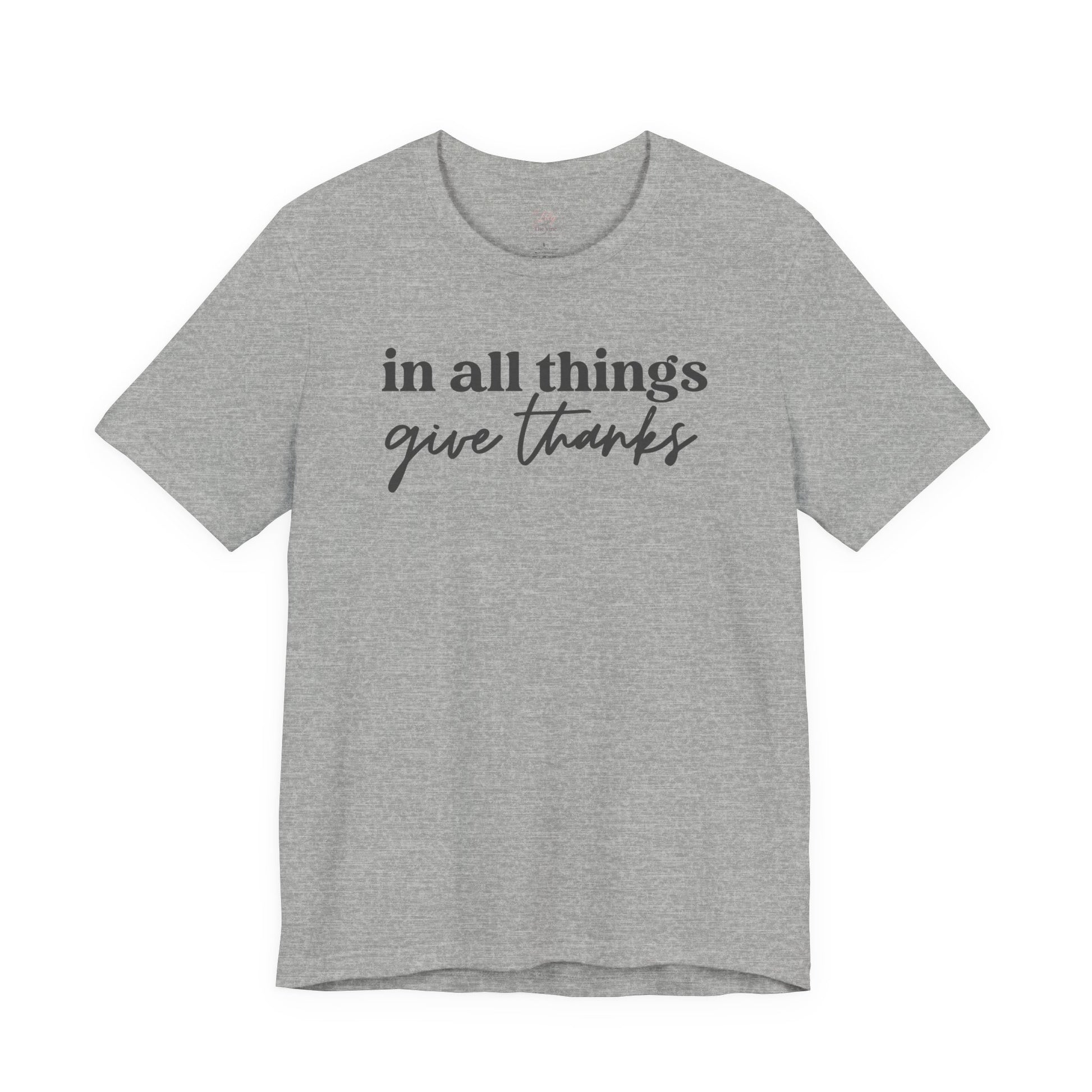 This In All Things Give Thanks Christian T-shirt is inspired by 1 Thessalonians 5:18, reminding us that thankfulness isn’t reserved for the good days — it’s a daily act of faith. Whether in joy or in trial, this verse anchors your heart in God’s unwavering love and purpose.