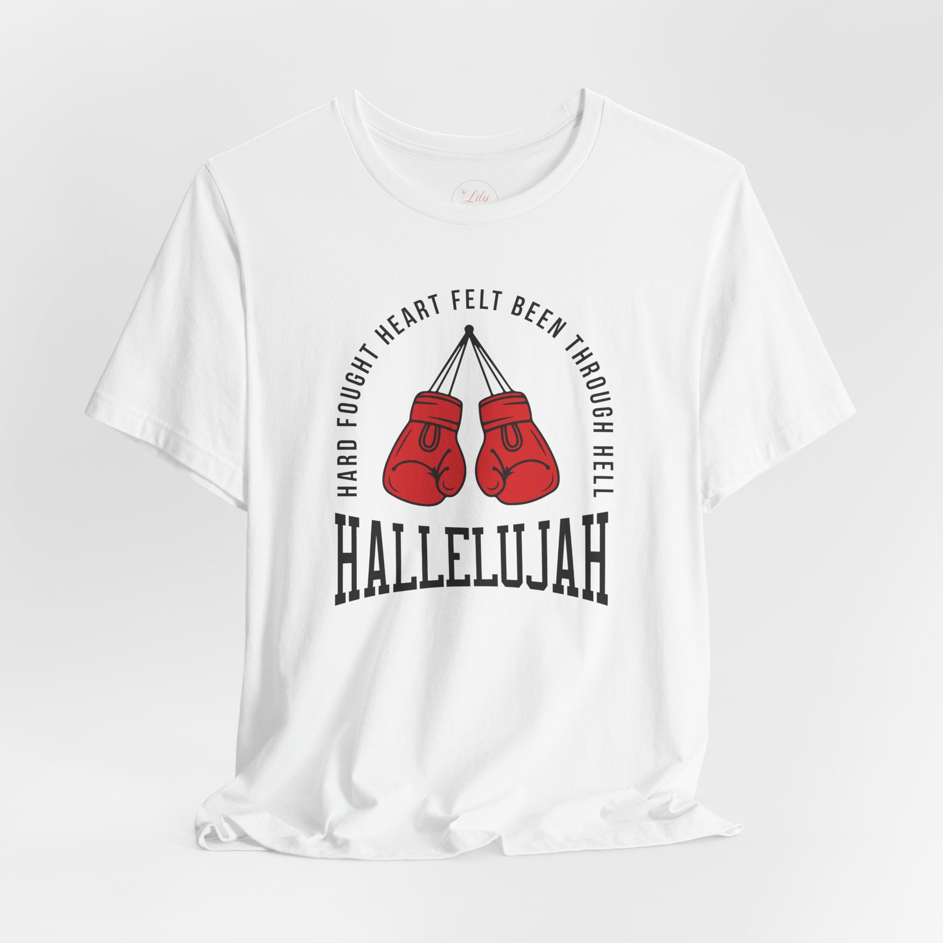 Hallelujah Boxing Christian Tee, Unisex Jersey T-Shirt, Motivational Workout Shirt, Gift for Fighters, Boxing Themed Apparel